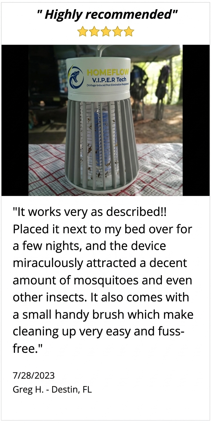 As ofJuly 28, 2023 –  Since Invasive Mosquito Species have been Spotted in the US, the Homeflow VIPER demand has been increasing considerably and its inventory has been flying off the shelves. Their current supply is flying off the shelf! Get yours with 55% OFF + FAST SHIPPING before it's too late.