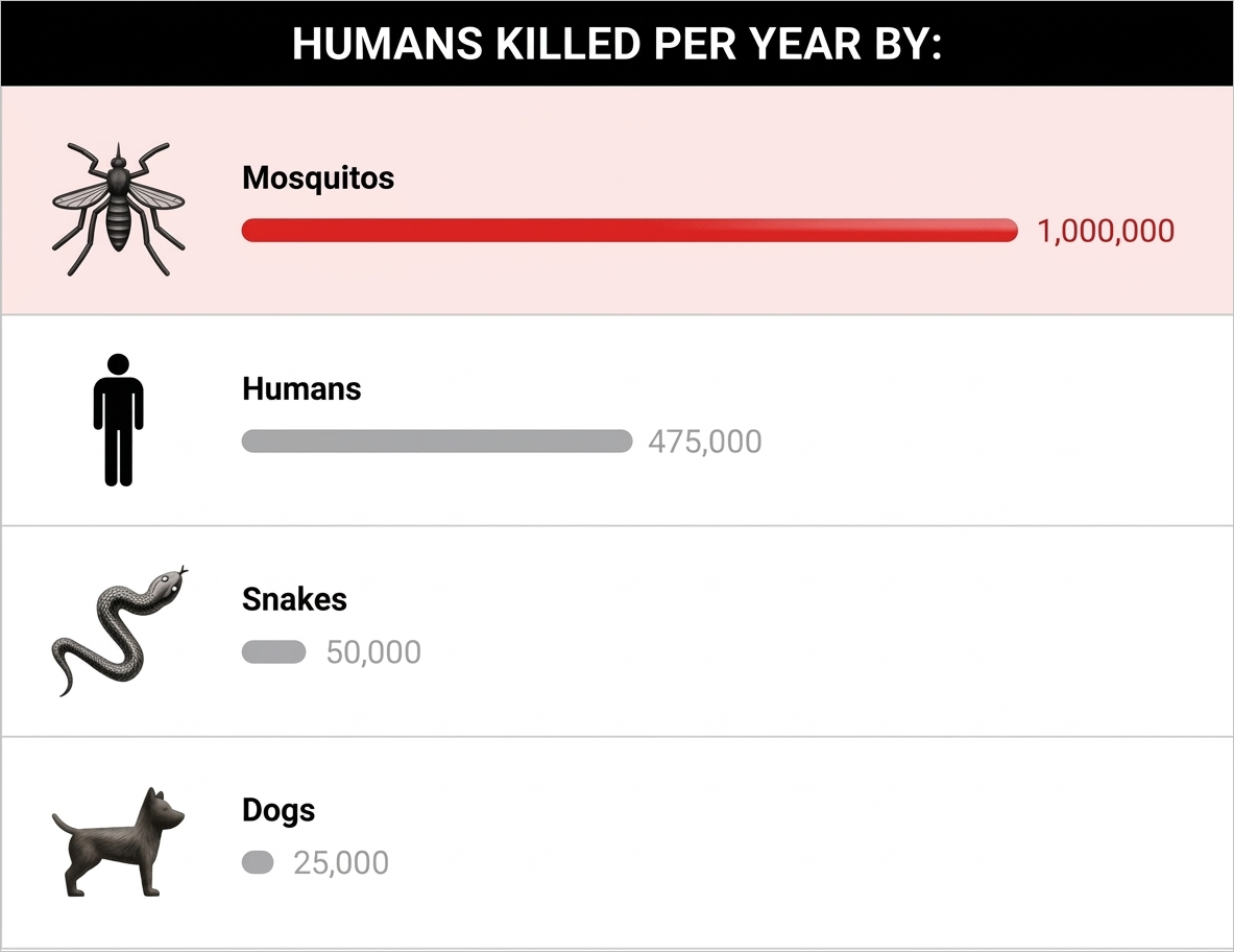Mosquitoes can kill up to one million people a year – twenty times more than snakes, which "only'' kill 50,000 people a year. And, you can't exactly tell if a mosquito is carrying dengue, zika, malaria, or chikungunya, so they're better ZAPPED than sorry!